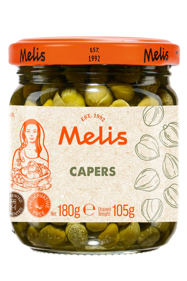 Melis Capers Pickles are small but flavorful buds, prized both for their culinary use and traditional health benefits. With their tangy, briny taste, they add a distinctive punch to fish dishes, sauces, and fresh green salads. A Mediterranean favorite, capers are the perfect way to bring bold flavor and elegance to your meals.
