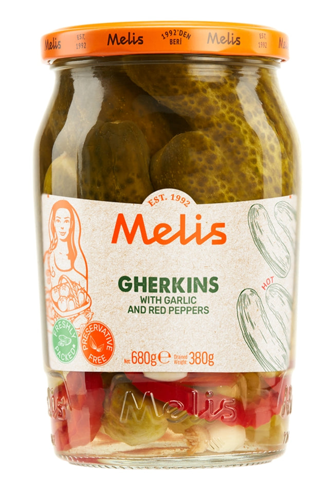 Melis Gherkins Pickles are iconically known for their irresistible crunch and mouth-watering flavor. Harvested fresh and jarred within 8–18 hours, they preserve the natural crispness and taste that make them a true favorite. With their spicy and garlicky notes, these pickled gherkins are perfect alongside meals or enjoyed as a snack straight from the jar.